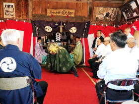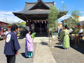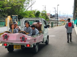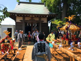 いよいよ御嶽神社例大祭本番です。10時より、例大祭の拝礼が行われました。その後、お囃子が町内を巡行し、夜には奉納演芸大会が行われました。座長も大トリで唄わせて頂く予定です。楽しみです。