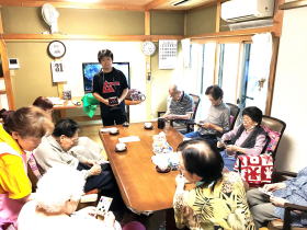 暑さ寒さも彼岸まで、本日「お彼岸」に入りましたので、9月行事「おはぎ作り&ミニゲーム大会」を行いました。「つぶあん、こしあん、きなこ」と思い思いに好きなもので作って頂きました。その後、謎の「マジシャン」が登場して、ミニゲーム大会を行いました。楽しい時間をお過ごし頂けたかと思います。明日も行います。