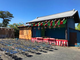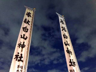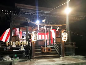 今年も神社総代の大谷様のご厚意で、白山神社奉納演芸大会に出演させて頂きました。座長の出演時間にあいにくの雨となってしまいましたが、皆さんの応援で何とか無事終了しました。来年も是非、よろしくお願い致します。