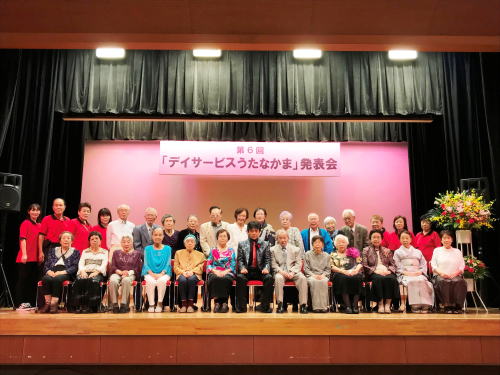 今日は、「第6回デイサービスうたなかま発表会」が堺市民センターホールで行われました。天気が心配でしたが、皆さんが到着するまでは雨も降らず、良かったです。会場は沢山の皆様にお集まり頂き、大変盛り上がりました。うたなかまの皆さんも日頃の練習の成果を十二分に発揮して頂きました。舞台では堂々と、とてもお上手に唄って頂き、本当に嬉しかったです。「うたなかま」の1年間の目標でもある「秋の発表会に参加して、歌唱する」を見事達成して頂きました。また来年の第7回発表会に向けて、歌を楽しんで唄って頂き、発表会に参加して欲しいと思います。発表会も大成功のうちに無事終了しました。うたなかまの皆さん、ご家族様の皆様、関係事業所等の皆様、スタッフの皆さんに厚く感謝御礼申上げます。これからも一生懸命にご支援させて頂きますので、今後とも「うたなかま」をよろしくお願い致します。本日は本当にありがとうございました。