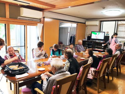 今日は3回目の上記を行いました。本日も「火曜日も皆さんとミッキーさん」とで盛り上がり、「ゲームとおはぎ」で楽しんで頂きました。4回目は木曜日です。