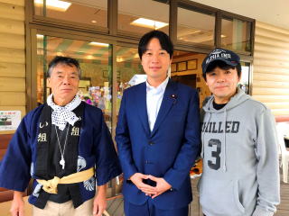 山本囃子連連長と衆議院議員小倉まさのぶ先生と