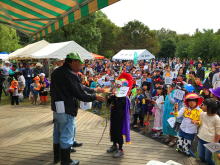 今日は、小山町内会連合会主催の「ふれあいウォーキング」が開催されました。昨年は雨の為、残念ながら中止となってしまいました。今年も朝のうちは雨が降っていましたが、何とか開催する事が出来ました。会場は、ハローウィンコンテストや和太鼓等のイベントがあり、小山内裏公園は、約800名の皆様がお集まりになったとの事です。そして無事に何事もなく、終了する事が出来ました。その後、座長は、曾田先生主催の西東京地区カラオケ大会が行われている、町田市民ホールへ直行します。急げ!!