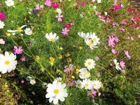 朝、うたなかまに向かう途中、きれいな青空と雲を見ました。また、送迎の道中、コスモスが綺麗に咲いていました。今が一番良い季節だと感じました。秋なんですね。