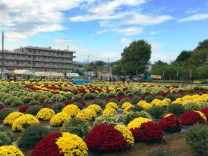 11月の外出行事の下見に、新磯ざる菊花会場に行きました。今日は、お祭りが開催されていたようです。残念ながら和太鼓等のイベントは見る事が出来ませんでしたが、10回目の記念イベントでもあり、会場には沢山の皆さんが見学していました。しかし見事なざる菊でした。うたなかまの皆さんと行く事が楽しみです。