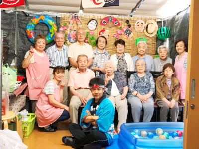 今日から始まりました。「第7回うたなかま夏まつり」、昼食は「夏祭り食」を楽しんで頂きました。その後、ゲーム大会では、「ヨーヨーすくい」、「スーパーボールすくい」、「ボール投げ」、「輪投げ」と行い、景品もれなくで、初日から大変盛り上がり、皆さんも喜んで頂けたかと思います。あと4回楽しみです。
