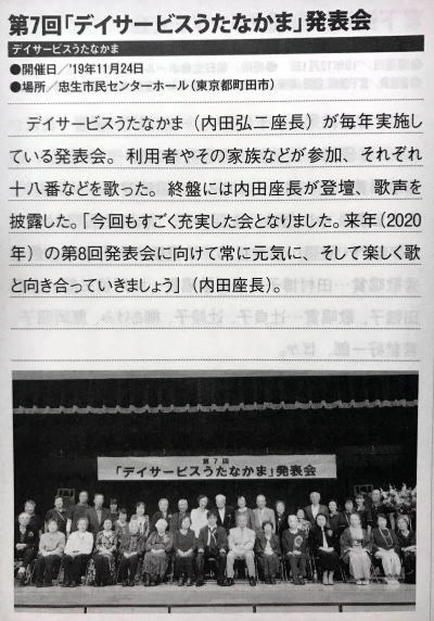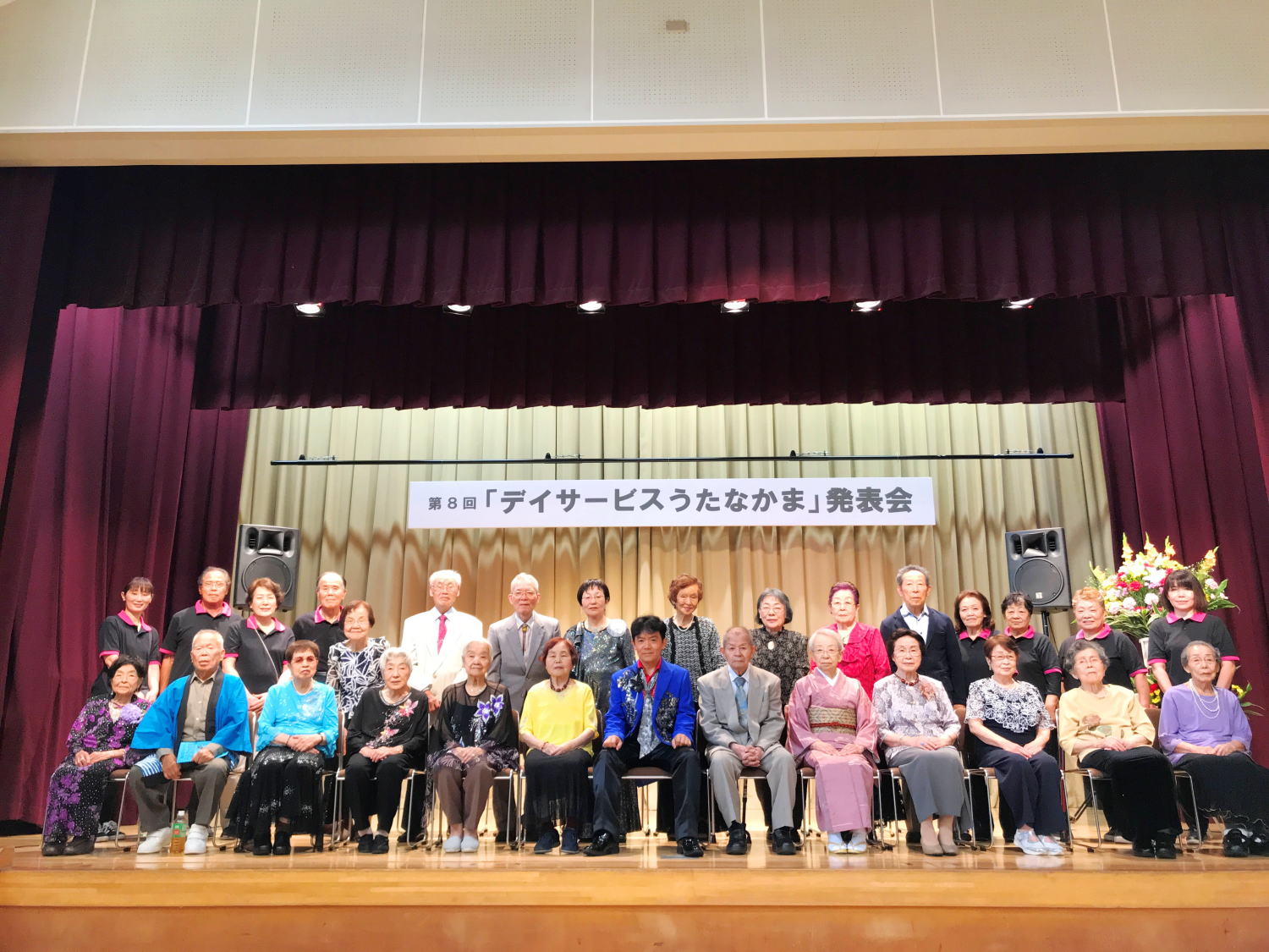 今日は、「第8回デイサービスうたなかま発表会」が木曽山崎コミュニティセンターで開催されました。今年は、新型コロナウイルスの感染拡大の影響で、開催出来るかとても心配でしたが、感染予防策を万全に整え、無事盛大に開催する事が出来ました。本当に嬉しかったです。「うたなかまの皆様」も日頃の練習の成果を十二分に発揮して頂き、一生懸命に唄って頂きました。お忙しい中、会場にお足を運んで頂いた、ご家族様、ご友人の皆様、ケアマネの皆様、本当にありがとうございました。また、明日から気持ちも新たに、来年の「第9回うたなかま発表会」に向けて、「うたなかまの皆様」と歌を楽しみながら頑張っていきたいと思います。スタッフの皆さんもお疲れ様でした。今後共、よろしくお願い致します。