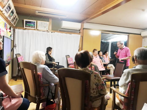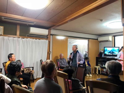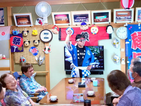 今日は、8月行事「第8回うたなかま夏祭り」の2回目を行いました。今日も皆さんと「熱く盛り上がり」ました。とても喜んで頂けたかと思います。明日も行います。