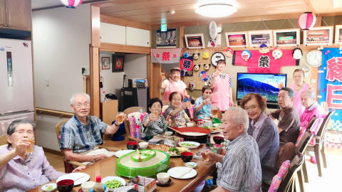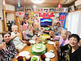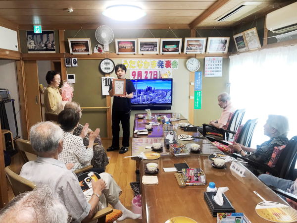 また、本日は、「7周年記念撮影」、昼食は「豪華7周年祝い膳」、3時のお茶は「7周年記念紅白饅頭」と思う存分、記念日をお祝いさせて頂きました。うたなかまの皆様も大変喜んで頂けたかと思います。本当に今日は幸せな1日でした。