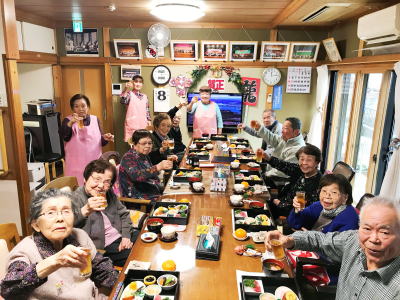 今日は19時15分から「第7回デイサービスうたなかま発表会」のお疲れ様会と忘年会を行いました。宴は大いに盛り上がり、スタッフの皆さんとの親睦もさらに深まったと思います。お陰様で7回目の発表会も無事に成功し、1年間、事故や怪我等もなく、本当に良かったです。「スタッフの皆さん」も本当に頑張って頂きました。来年もよろしくお願い致します。今日は本当に楽しい時間でした。