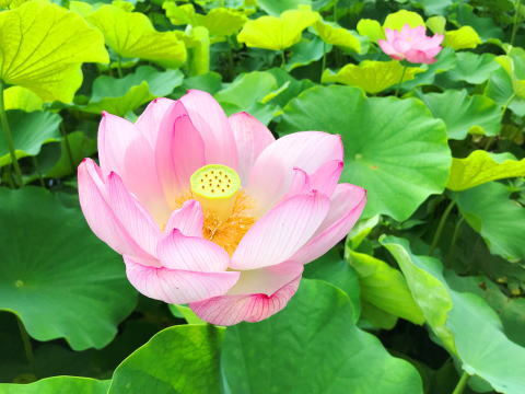 「小山田の蓮」が見頃です。「うたなかま朝の送迎中」の「蓮」です。「うたなかまの皆さん」と行きたいですが、コロナと暑さで今年は残念ながら「来年に見送り」たいと思います。