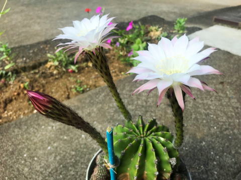 またまた咲きました。「サボテンの花」前回と違う「サボテンの花」です。チャンスはあまりなく、本当にラッキーでした。「うたなかまの皆さん」にも写真を見て頂きたいと思います。