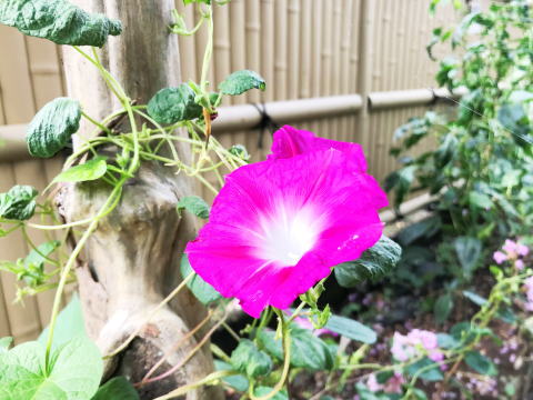 「うたなかま」の朝顔が綺麗に咲いています。「朝顔」と言うだけあり、「朝」に咲いて、お昼頃にはしぼんでいました。