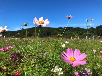 今日は2回目の上記行事を行いました。今日は、午前と午後の2回行きました。「秋晴れの最高のお天気」の中、「水曜日のうたなかまの皆さん」と楽しく「コスモス散策」をする事が出来き、皆様も「大満足」のご様子で本当に良かったです。コスモスを見ると「今は秋なんだなぁ~」と思います。