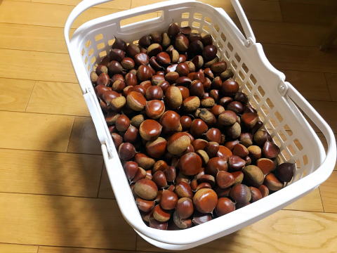 小山田の大谷様宅で採れた、「栗」です。バスケットいっぱいに持って来て頂きました。大谷様はいつも「うたなかま」を応援して頂いております。「うたなかまの皆様」と「栗」を味わいたいと思います。ありがとうございました。