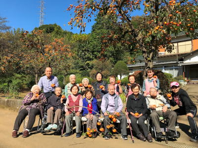 今日は、秋を感じる最高のお天気の中、11月特別行事「T様宅の柿とり&昼食:スシロー多摩境店」を行いました。T様には毎年、柿とりの場所をご提供して頂き、大変感謝致します。今年は特にもの凄い数の「柿」がとれました。皆様には柿の枝取りなどをして頂き、参加して頂きました。皆さん「美味しそうな柿だね」「とても楽しかった」の声が多く聞かれとても貴重な時間をお過ごし頂けたかと思います。