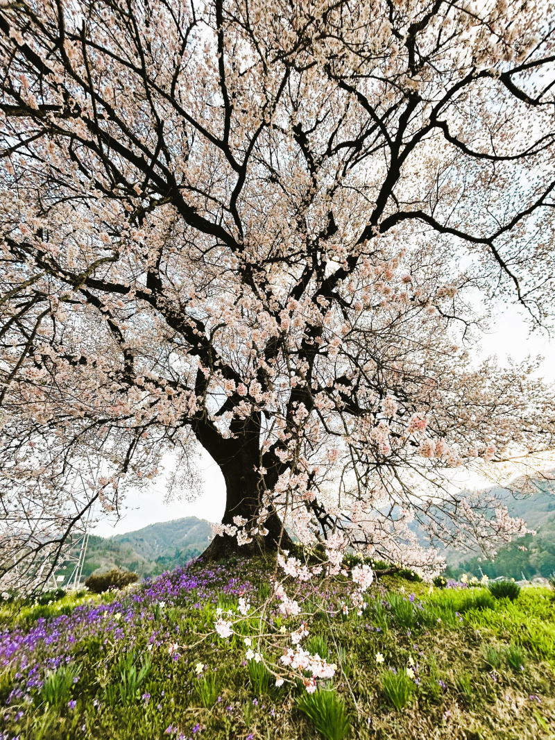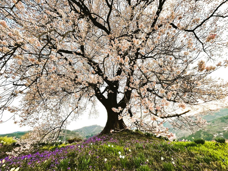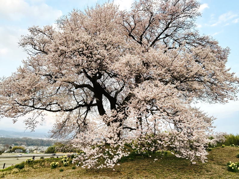 樹齢300年超のエドヒガンザクラ。韮崎市の天然記念物に指定。
